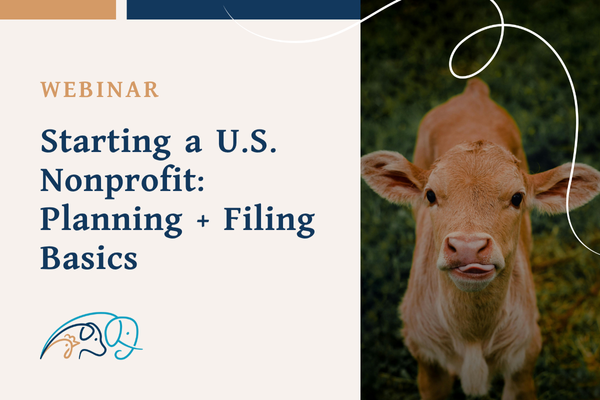 Thinking about starting a nonprofit in the U.S.? This webinar will walk you through the essential legal and organizational steps to form a 501(c)(3) or 501(c)(4) from choosing your structure and drafting bylaws to filing for tax-exempt status. Whether you're just getting started or refining your plans, this session will give you the tools to move forward confidently in your mission to improve lives for animals.
